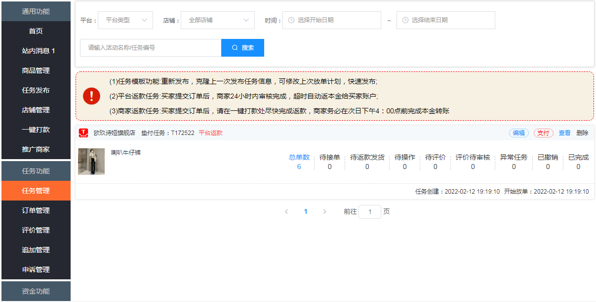 补单平台采用双返款模式,即商家返款和平台返款,商家返款只需充值任务佣金即可,放单后48小时内,商家通过补单后台的用户账户打款本金给用户,资金安全保障。平台返款商家需将本金和佣金都充值到平台由我们平台财务负责打款,当然对于一个安全稳定的老补单平台来说,两种返款模式一样的安全。